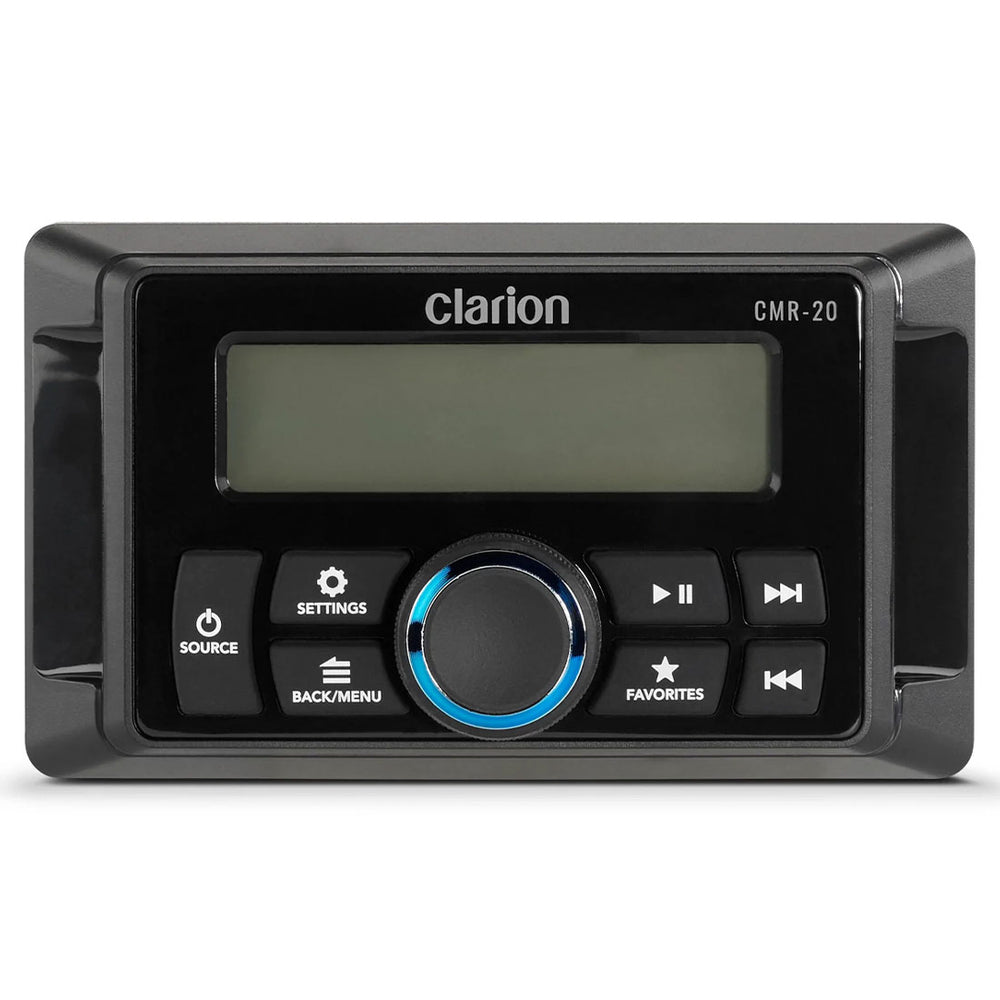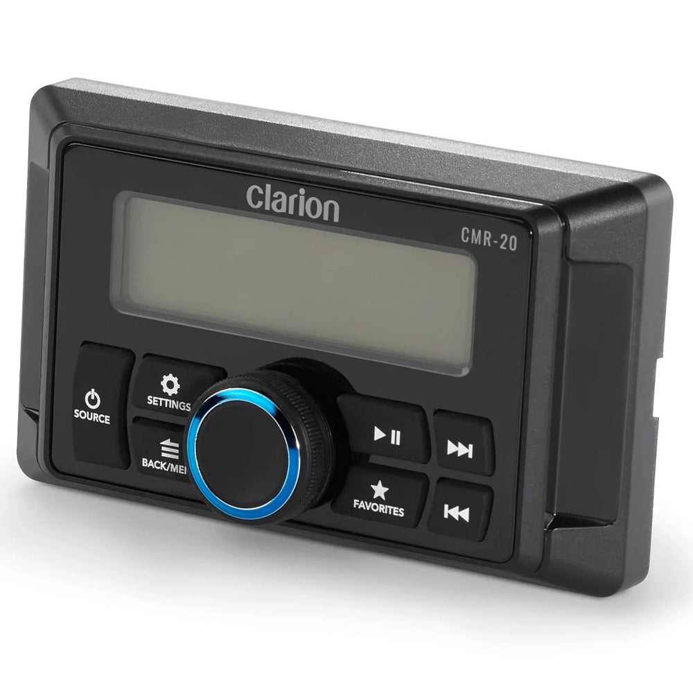 Marine Wired Remote with LCD Display Clarion's rugged CMR-20 remote control keeps you in command of your boat's stereo system. Use the backlit rubberized buttons to change sources, switch radio bands, adjust the volume, choose a track, toggle play/pause, and more. You can check out all your changes on the high-contrast LCD display.