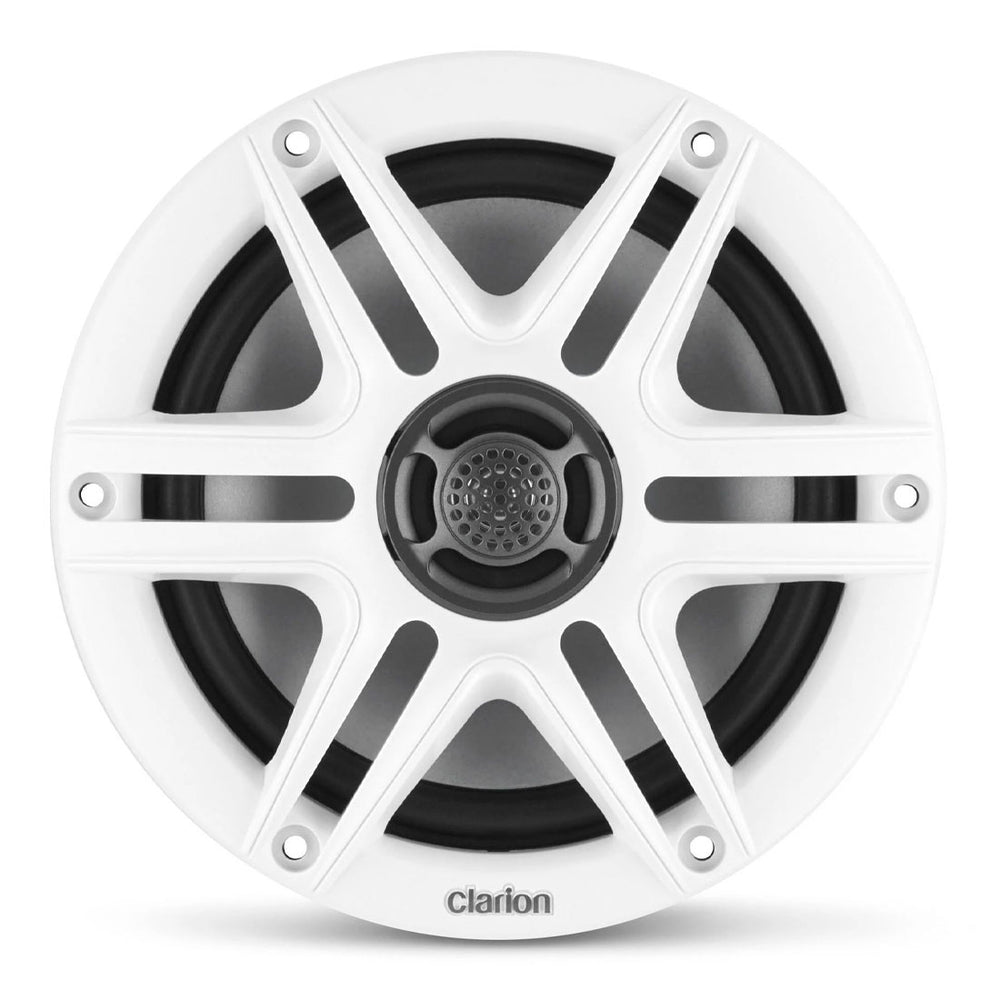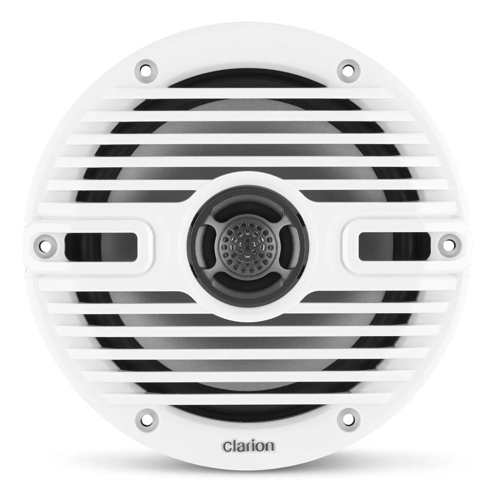 Clarion CMS-651 6.5" Coaxial Marine Speakers 30W RMS power handling 1/2-inch (13 mm) polymer dome tweeter Includes White & Black Classic Grilles. You know you can count on Clarion for sweet sound, and these CMS-651 6-1/2" speakers are also built tough for life on the water. The package includes two sets of classic-style grilles — black and white — to match your color scheme, and Clarion's exceptional waterproofing ensures sharp looks for years of great sound.