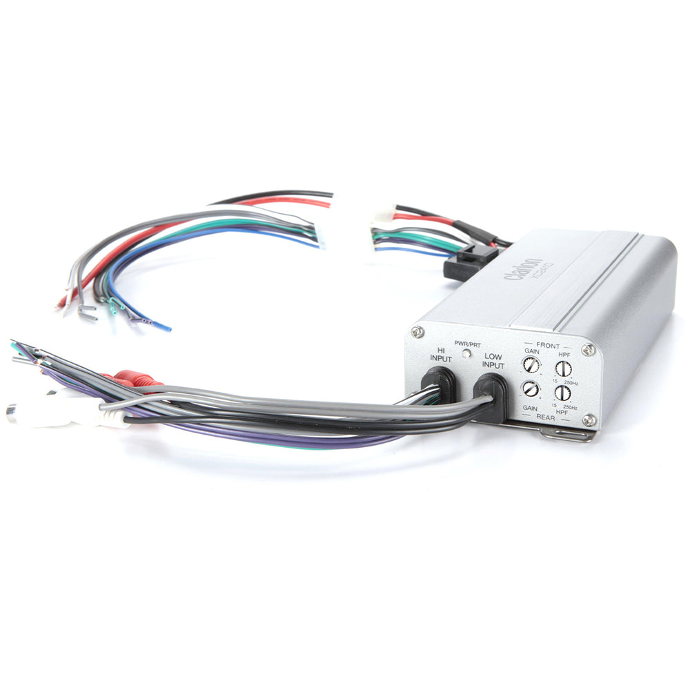 Clarion's XC2410 4-channel amplifier delivers 50 watts RMS per channel from a chassis that's about the size of your hand. This micro-sized amp can fit almost anywhere, even behind many dashboards. And Clarion managed to pack more watts per square inch inside this little powerhouse than almost any other 4-channel amp made.