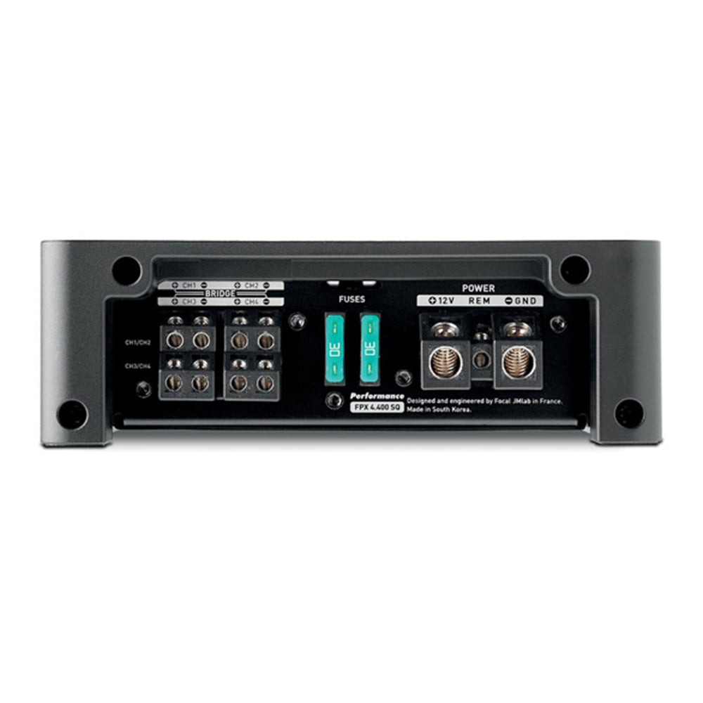 Elevate your audio experience with the Focal FPX 4.400SQ, a high-performance 4-channel amplifier that blends power and precision. Designed for audiophiles and serious music enthusiasts, this amplifier offers exceptional sound quality across 4-channel, 3-channel, and 2-channel configurations. Whether you're upgrading your vehicle’s sound system or setting up a high-fidelity audio system, the FPX 4.400 delivers crystal-clear audio and robust performance.