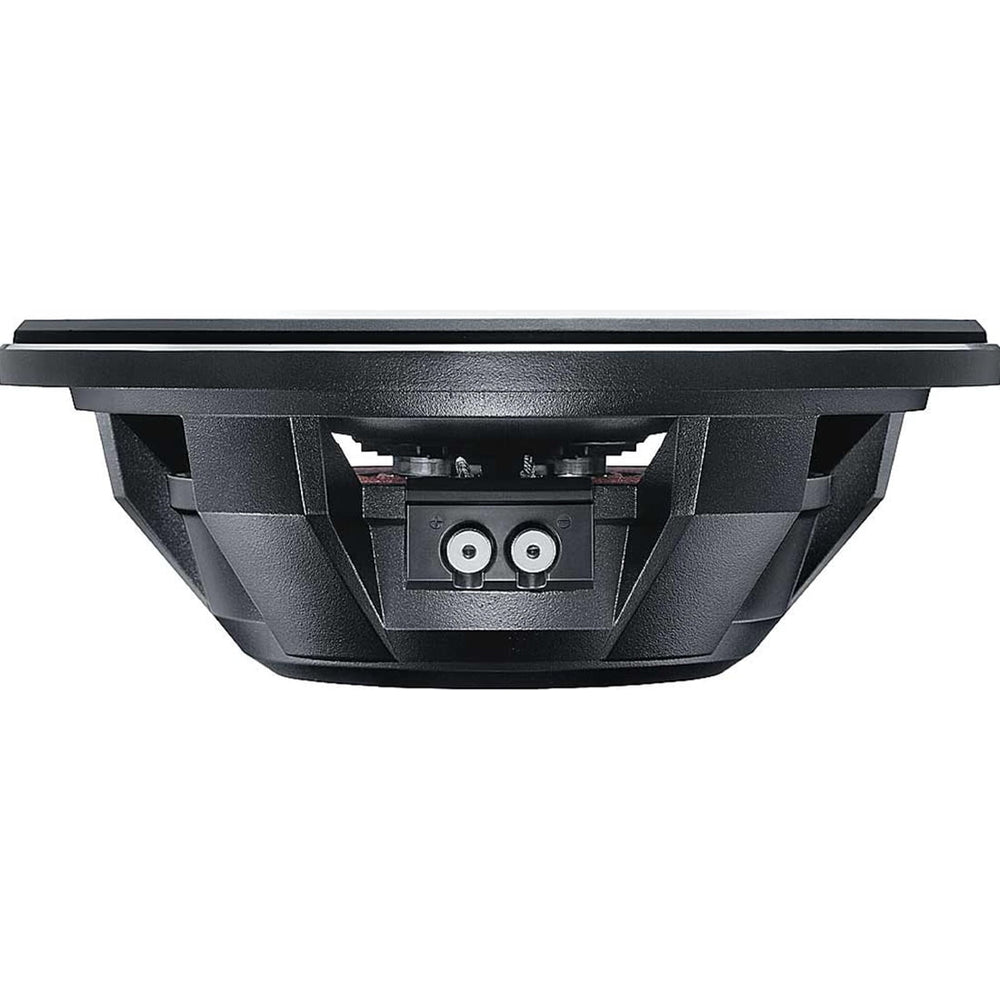 The flat woofer features a pair of silver-plated spring terminals on one side, allowing easy and convenient connection to your amplifier's speaker wiring. These spring terminals can accept up to 10 AWG speaker wire, ensuring secure connections for seamless sound transfer.