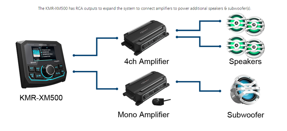 5. Can I expand the audio system of the KMR-XM500 with additional speakers and subwoofers? Yes, the KMR-XM500 features three 5-volt preamp outputs, allowing you to expand your audio system with additional speakers and subwoofers for a customized listening experience.