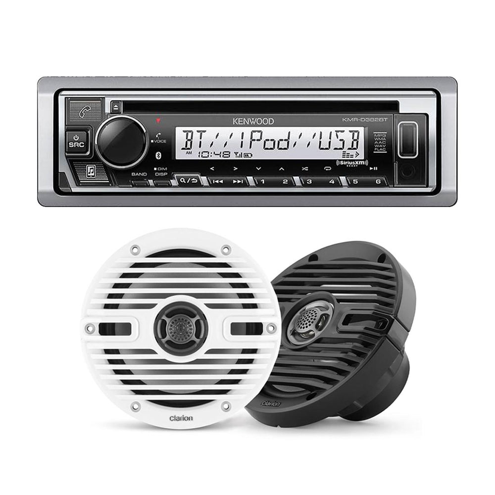 Kenwood KMR-D382BT Marine CD-Receiver | Clarion CMS-651 6.5" 2-way Marine Coaxial Speakers with Grilles - Bundle