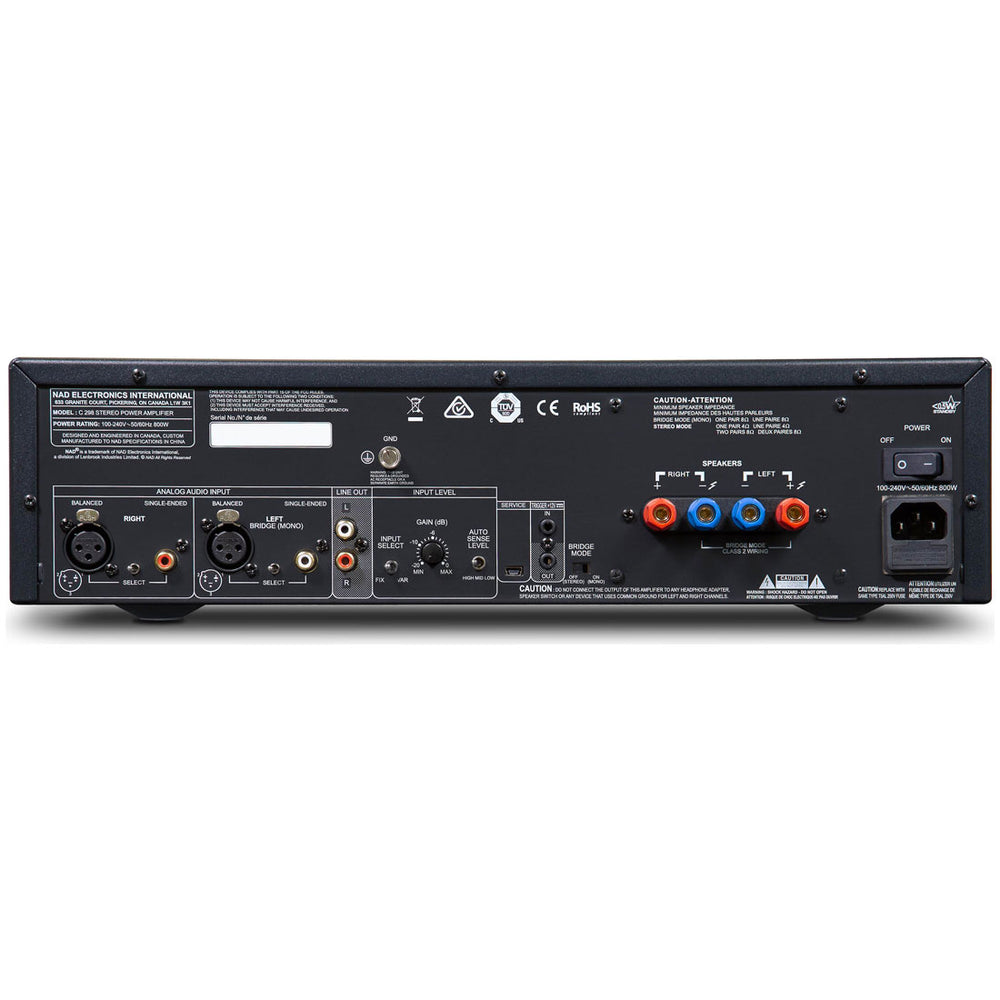 The NAD C 298 may appear to be a basic Power Amplifier, but we have carefully thought through all the use cases typically encountered to create a rich feature content. Selectable balanced inputs make the C 298 a natural for studio use or connection to High End Preamplifiers and Processors. These inputs include a trim control useful for matching to other components. A line out allows further addition of power on the same channel for additional speakers or subwoofers. Auto-sense with selectable threshold is perfect for automating complex systems or hiding the amplifier out of sight in a cabinet. We even include a Ground Lug that can be very useful for eliminating ground loops and noise in complex multi-unit systems. Added to all this connectivity is a Bridge Switch that turns the C 298 into an amazingly powerful Monobloc Amplifier. Start with one and add a second C 298 later when you upgrade your speakers.