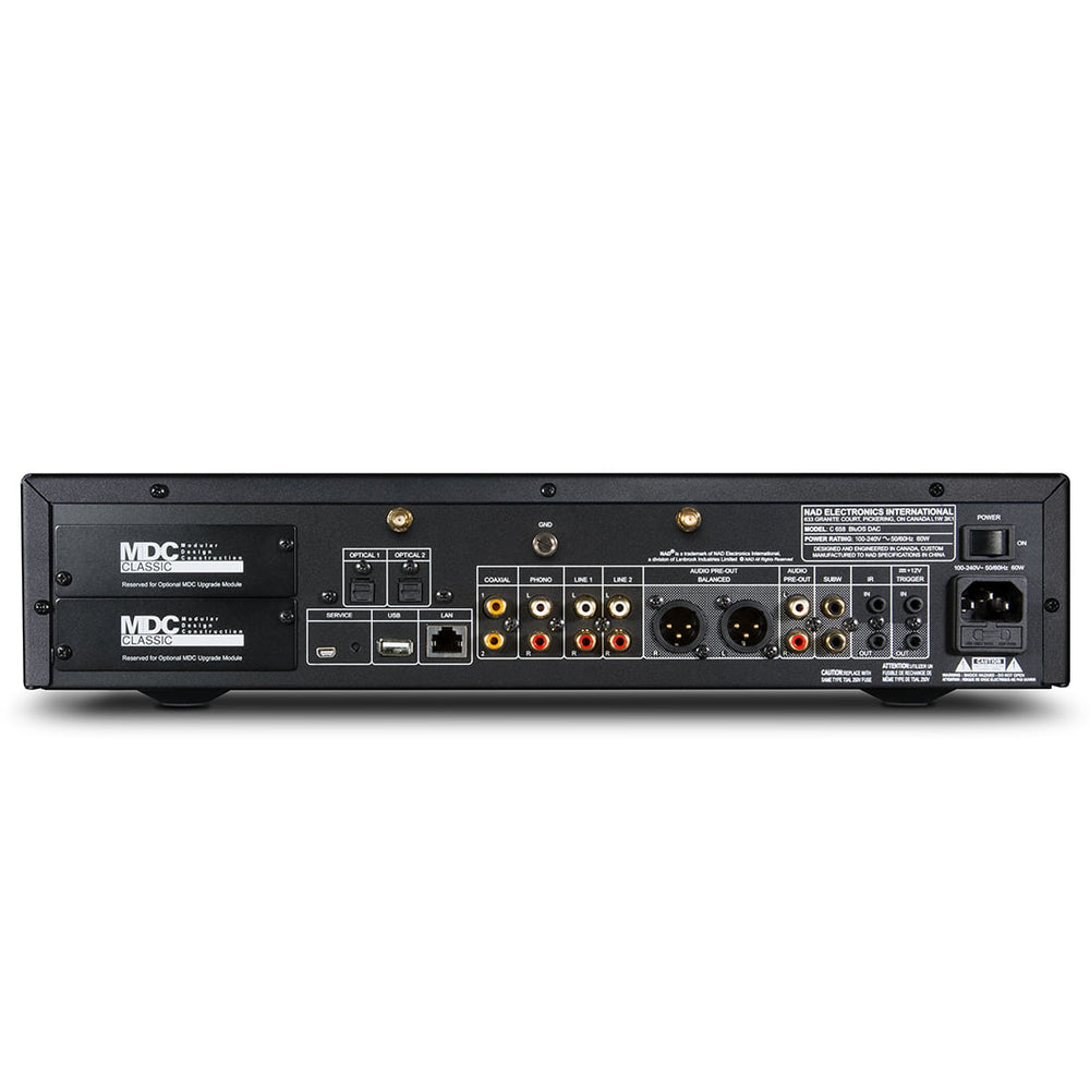 The C 658 creates an entirely new type of component that combines a Network Streamer, a state-of-the art DAC, and many aspects of the traditional Preamplifier into a single highly cost effective package. And thanks to NAD’s exclusive Modular Design Construction, it will keep pace with the latest technology. An optional HDMI 4k switcher module is available now allowing the best sound from any of the many HDMI sources available (like game consoles and video STBs). While the C 658 immediately replaces (or adds) your Streamer, DAC, and Preamp, it also adds many new features you may not be aware of, like a Bluetooth AptX HD transmitter to use with your wireless headphones. The highly flexible outputs allow for a true balanced connection to powered speakers or amplifiers. Single-ended connections for amplifiers and subwoofers are also provided and include an adjustable subwoofer crossover executed perfectly in the digital domain. A highly sophisticated MM Phono input is also included along with line inputs for legacy analog components