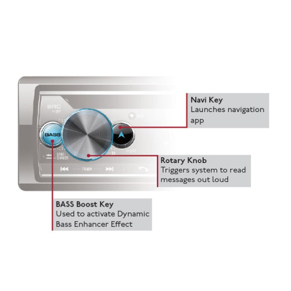 Integrate Your Smartphone with Your Receiver. Pioneer Smart Sync is a highly evolved app available for both iOS and Android OS that utilizes the power of a connected smartphone to expand the features and user interface of compatible Pioneer in-dash receivers. With support for either a Bluetooth® or USB connection, the link between your smartphone and the in-dash receiver can be either wired or wireless. Through Pioneer Smart Sync, you can access many popular smartphone apps for maps, messages, music and more. Pioneer Smart Sync now features Amazon Alexa Built-in. Just download or update to the latest version of the Pioneer Smart Sync app and download the Alexa app. Using Alexa with Pioneer Smart Sync is simple – just tap-and-ask – you can ask to play music, hear the news, check weather, control smart home devices1, and more. Alexa lives in the cloud, so it’s always getting smarter, adding new capabilities that are delivered to your device automatically. To learn more about the Pioneer Smart Sync app, visit www.pioneer-carglobal.com/pss. Compatible CD Receivers feature designated buttons for Navi, and BASS Boost. The Rotary knob that triggers system to read messages out loud. Download the Pioneer Smart Sync app on the Apple® App Store and Google Play Store.