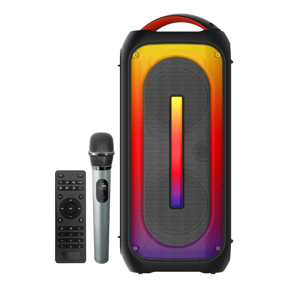 With two 60W speakers, a wide frequency range, Bluetooth 5.3 technology, and a long-lasting battery, the BTS3651 Bluetooth Speaker is a versatile and powerful audio solution. Its added features, including RGB color lights with effects, a wireless microphone, and a remote control, further enhance its usability and appeal. With this speaker, you can enjoy clear and dynamic sound from your favorite devices, all while benefitting from its extended 10-hour playback time on a single charge. It’s the perfect audio companion for any music enthusiast.