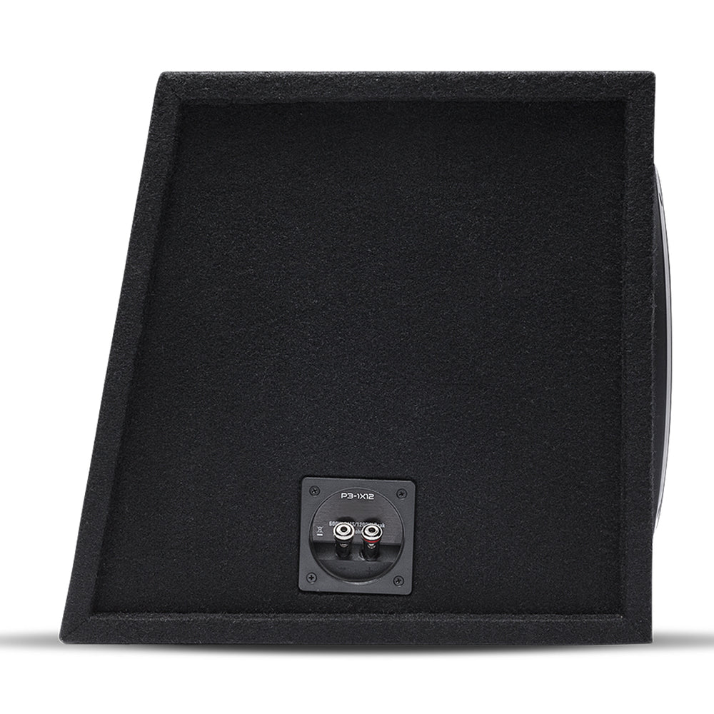 The Rockford Fosgate P1-1X12 is a single P1 12” vented enclosure with 250 Watts RMS power handling wired to a 4-gram load. The enclosure is constructed with 5/8” MDF, covered in high-density carpet, and features quick-release compression terminals. The most convenient way to get low-frequency bass in your system is to drop in a Punch Loaded enclosure. We're not talking junk in the trunk, we're talking the same genuine Punch woofers available separately. Rockford Fosgate P1-1X12 Punch Loaded enclosures are constructed with durable 5/8" MDF and tuned by our computer-aided design software. P1 Loaded Enclosures feature similar tonal performance as P2/P3 models but are easier to move in and out of vehicles due to their lighter weight.