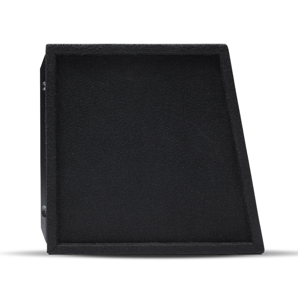 Rugged 5/8" medium-density fiberboard construction means this enclosure will hold strong for fat, heavy bass. Industrial-grade black carpet provides a clean, finished look, and protects your trunk from nicks and scratches. This enclosure uses an advanced port design that promotes generous air movement while reducing distortion-causing port noise, so you hear louder, deeper bass. Add an amp and some wiring, and feel the thick low end this enclosure adds to your ride.