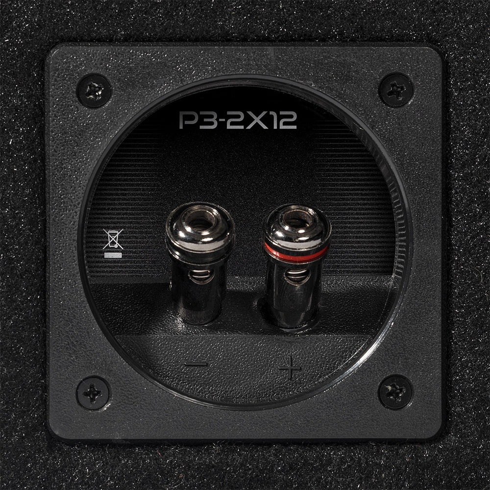 The P3-2X12 is a dual P3 12” vented enclosure with 1200 Watts RMS power handling wired to a 1-Ohm load. The enclosure is constructed with 5/8” MDF, covered in high density carpet, and features quick release compression terminals. The most convenient way to get low frequency bass in your system is to drop-in a Punch Loaded enclosure. We're not talking junk in the trunk, we're talking the same genuine Punch woofers available separately. Punch Loaded enclosures are constructed with durable 5/8" MDF and tuned by our computer aided design software. P3 Loaded Enclosures feature similar tonal performance as P2 & P1 models, but with higher power handling capacity.