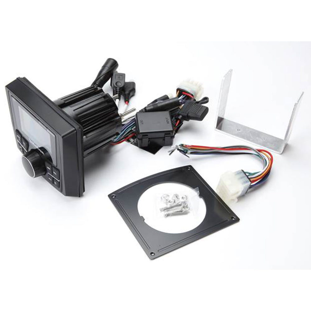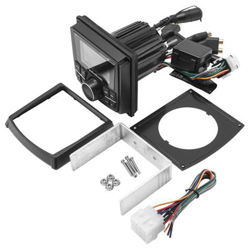 The Rockford Fosgate PMX-3 digital media receiver for marine and motorsports applications has a full color 2.7" TFT display for optimum viewing even in full sun that is optically wet bonded to prevent any dust or moisture penetration. This unit not only has the functionality you desire such as a custom-designed GUI interface and menu system built with "ease of use" in mind, but also features full iPhone support with folder browsing capability.