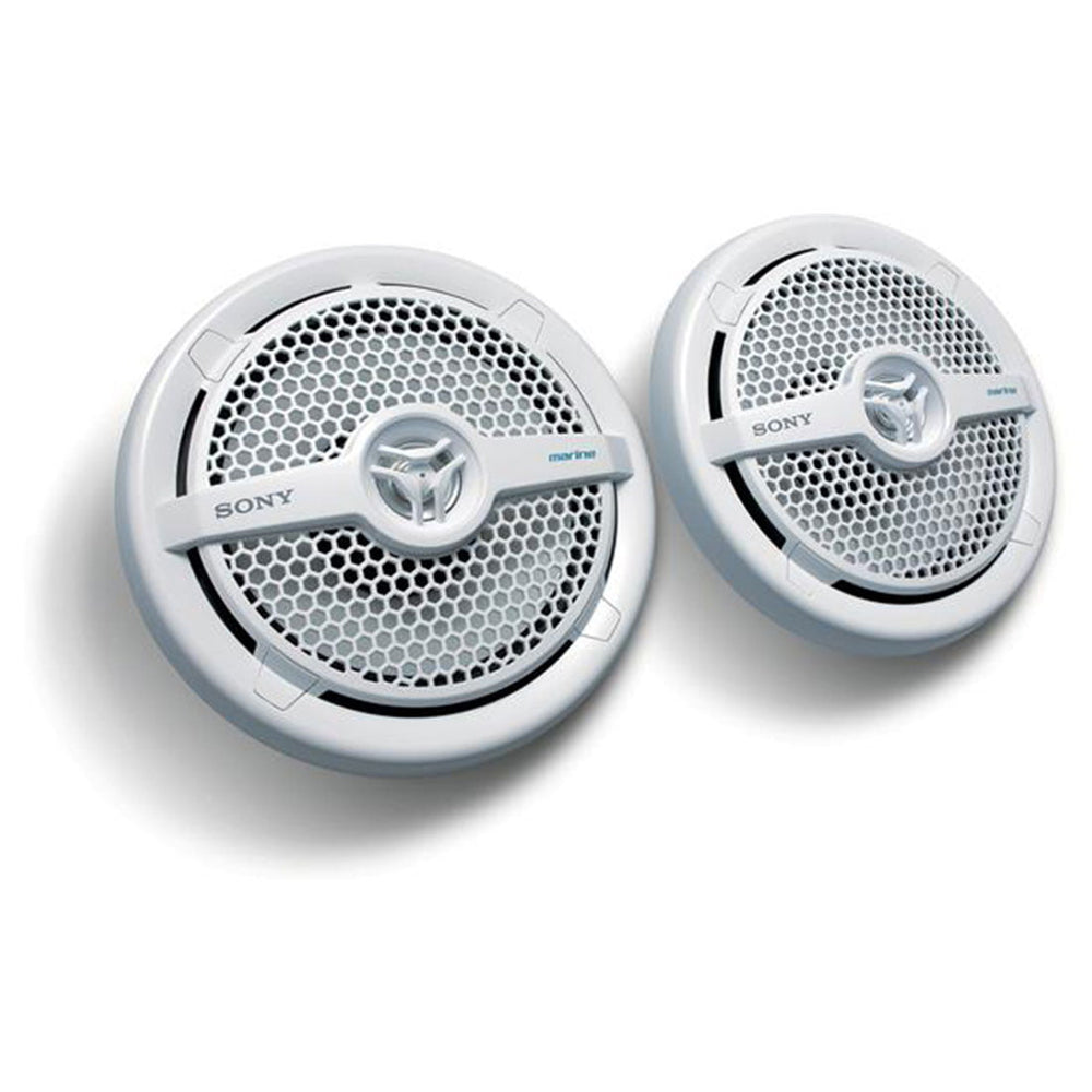 Marine speakers don't just need to sound good — they need to last, too. The Sony XS-MP1621 marine speakers have the auditory bases covered, thanks to responsive polypropylene woofers and tweeters, while durability is ensured with UV-protected components and a water-resistant design. Thanks to the sharp styling of the grilles, these 6-1/2" speakers will cut a fine figure in your boat's bulkhead. Don't like white? No problem, the grilles are paintable, so you can customize the look to match your style. These speakers sound great, and more importantly, they are built to keep sounding great in the marine environment.