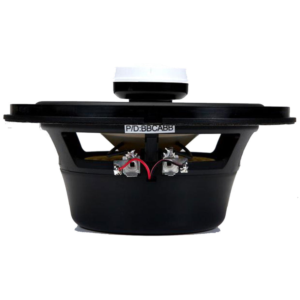 UV and Water Resistant: These marine speakers feature UV and water resistant removable white grilles, speaker baskets, polypropylene cones, rubber woofer surrounds, and poly cone tweeters.