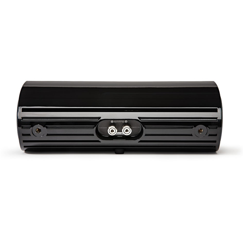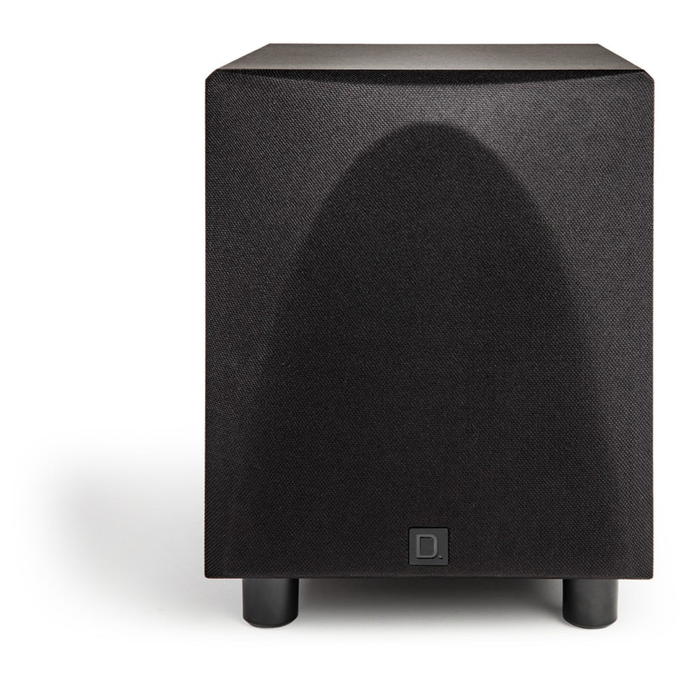 The subwoofer uses a non-resonant monocoque enclosure and low-diffraction construction. Because the cabinet resists vibration, the bass reaches the room with less cabinet resonance.