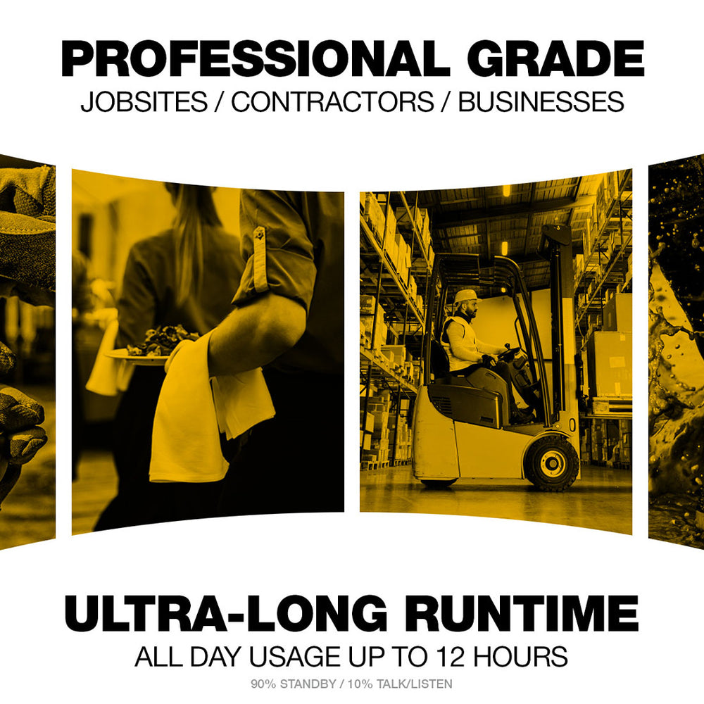 The DeWALT DXFRS300-BCH6 radios offer an impressive range of up to 250,000 sq. ft. or 20 floors, depending on the environment, ensuring clear communication over long distances.