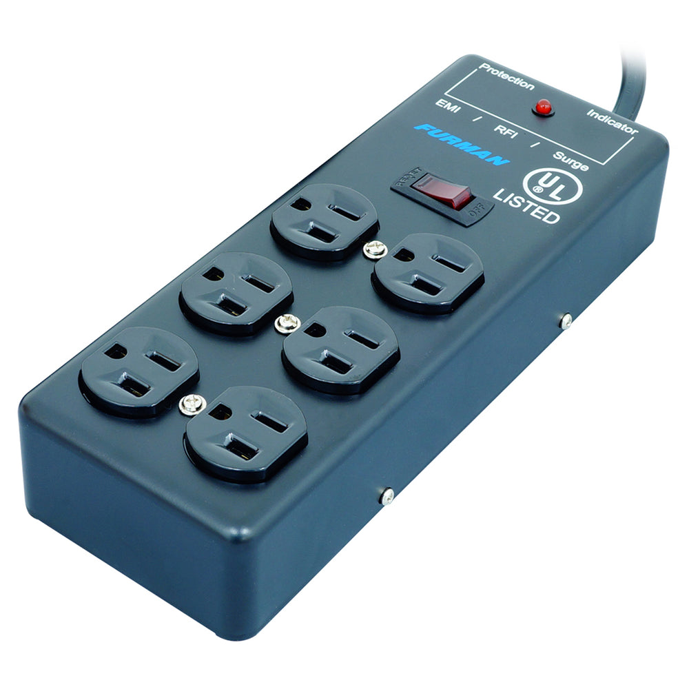 Get six outlets where you need them with this block surge suppressor. The Furman SS-6B is a 6-outlet steel power block with standard level surge protection, EMI/RFI filtration, heavy duty steel construction, and 15 ft. power cord. Safety Agency: cULus