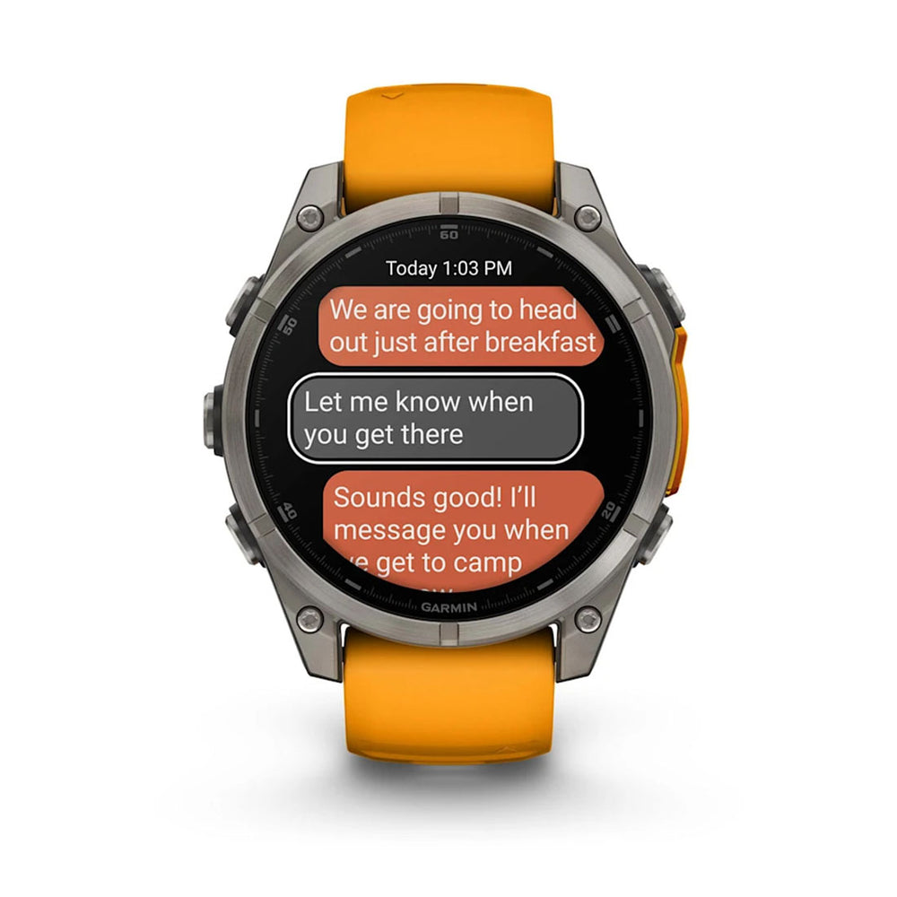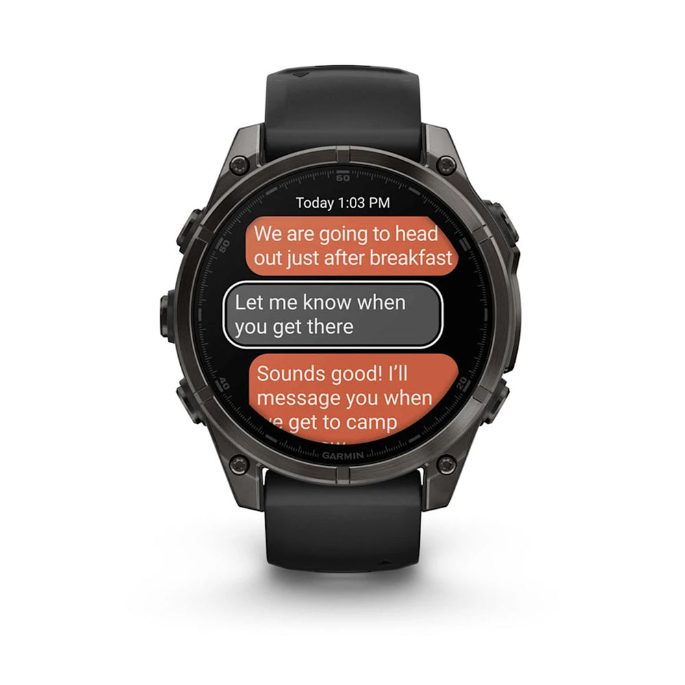 - Can I make calls with the Garmin fēnix 8? Yes, the fēnix 8 has a built-in speaker and microphone for voice messaging and making calls.