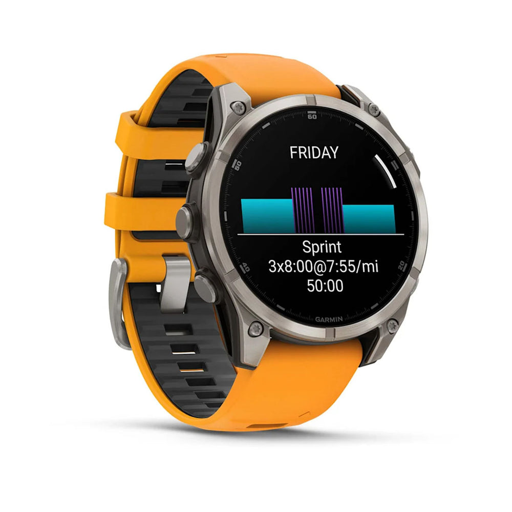 This smartwatch is a game-changer for anyone into multisport training. Whether you're running, swimming, cycling, or doing yoga, the fēnix 8 has sport-specific strength workouts and is preloaded with over 30 activity profiles. You can seamlessly switch between sports and track everything from your pace to calories burned and even training load.