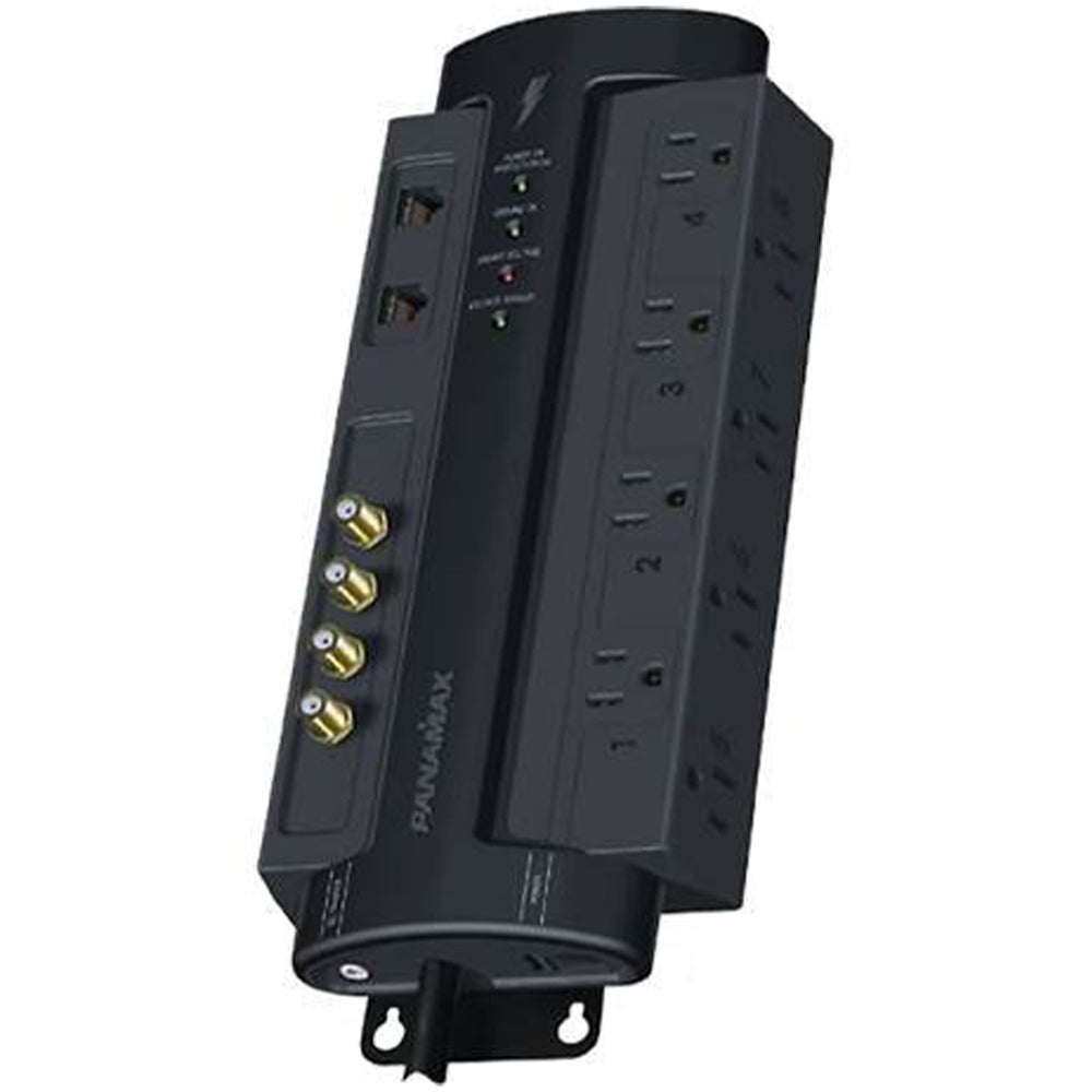 The M8-AV-PRO has eight outlets separated into two isolated filter banks to reduce the possibility of interference between components. One bank of four outlets is designed for equipment with higher current demands, such as home theater receivers and powered subwoofers. The other bank of outlets protects the rest of your gear. You also get three sets of protected coaxial input/output jacks for your cable TV and antenna feeds, plus one input/output for your telephone or Ethernet connection. The M8-AV-PRO's versatile design lets you protect even more components by adding optional Panamax modules.M8-AV-PRO Features :