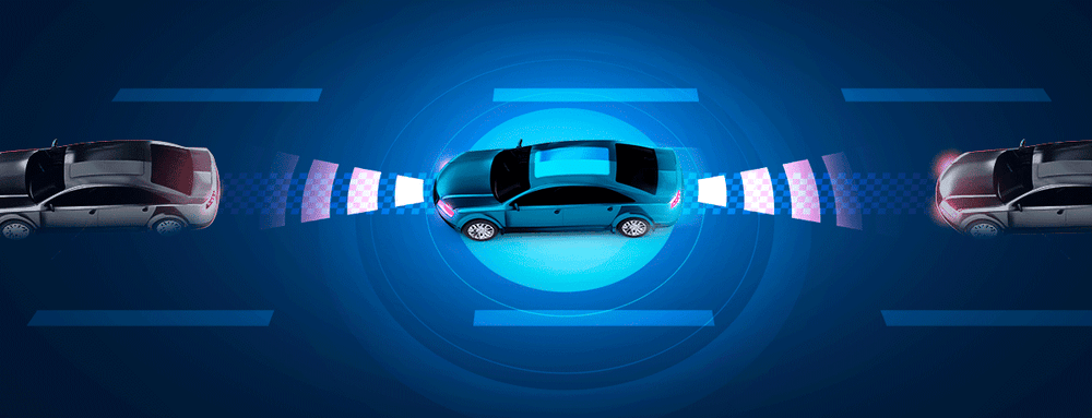 | Notifies the driver using a buzzer when the preceding car moves away at traffic signals. | Monitors the distance vis-a-vis the preceding car and triggers a warning in case of collision risk. | Monitors the vehicle’s position and initiates a warning in case of lane drift. |