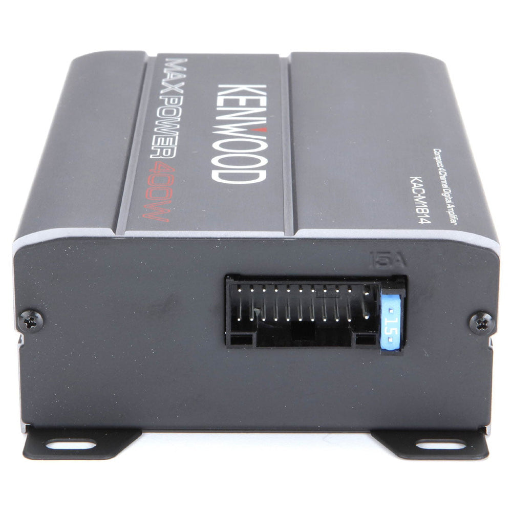 The Kenwood KAC-M1814 Class D 4-Channel Digital Amplifier is a powerful and versatile solution to upgrade your car, motorcycle, or boat's audio system. With its compact design, marine-ready construction, and universal signal compatibility, this amplifier offers convenience and high-quality audio performance. Whether you're cruising on land or navigating the waters, the KAC-M1814 delivers new clarity and impact to your sound system. With its protection circuitry and customizable filters, you can enjoy safe and personalized audio playback. Elevate your car audio experience with the Kenwood KAC-M1814 and enjoy powerful, crystal-clear sound on every journey.