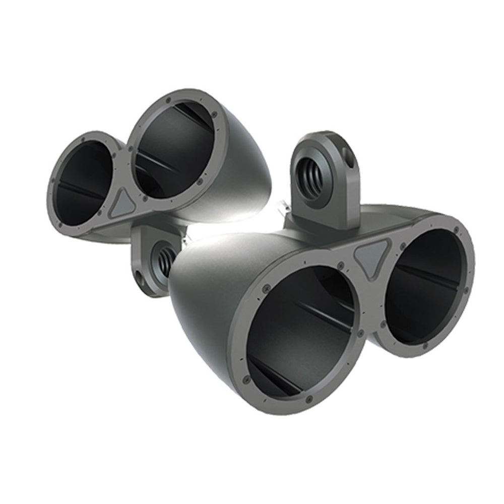 Designed specifically for marine and powersports applications, these enclosures are engineered to handle the demands of an active outdoor lifestyle. The rugged ABS plastic shells, combined with an acoustic polyfill lining, ensure exceptional durability and unparalleled performance. The package includes 2-5/8" aluminum tower-pipe clamps and mounting adapters catering to three popular pipe diameters.