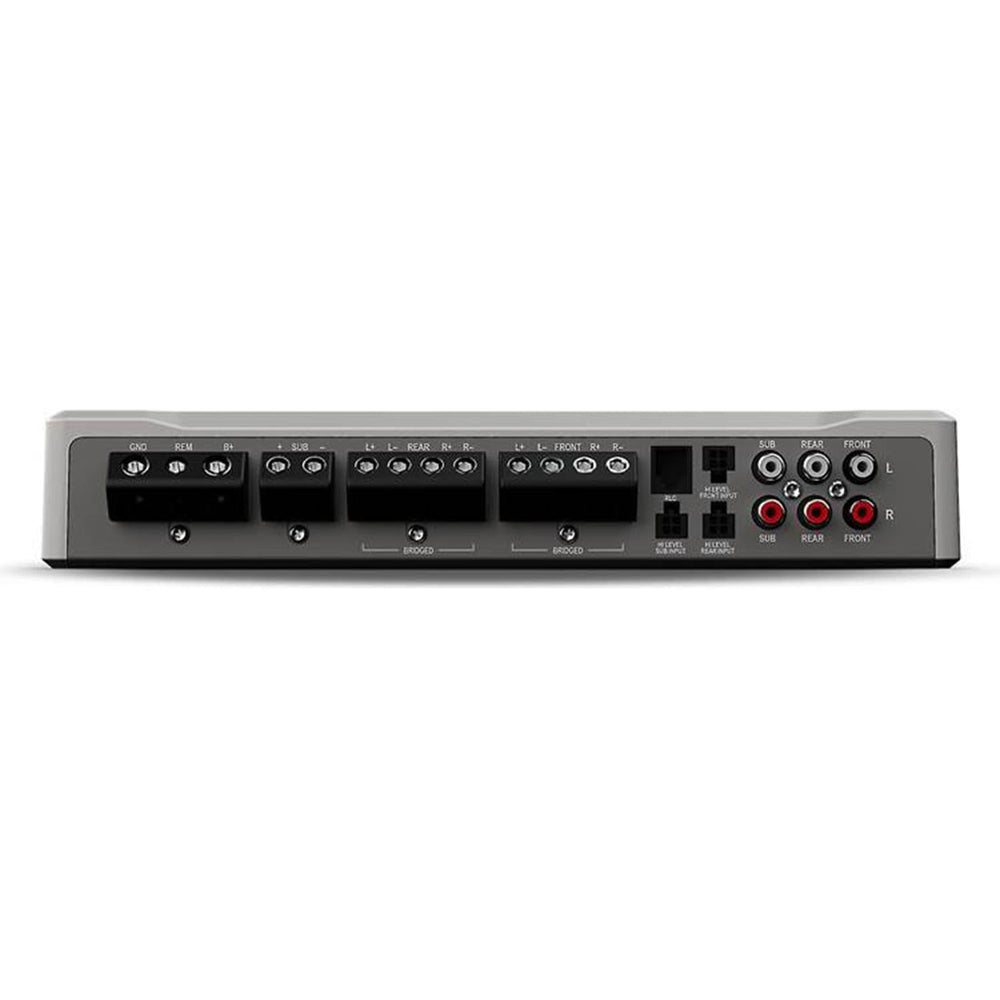 The Rockford Fosgate M2-750X5 five-channel amp can drive 4 speakers with 50 watts RMS each while powering a subwoofer with up to 350 watts RMS. Just want powerful 2-channel stereo plus bass? You can bridge the amp to 3-channel mode to drive a pair of high-performance speakers with 200 watts RMS each, while still sending that 350 watts to a sub. You can use the high- and low-pass filters, a subsonic filter, and Rockford Fosgate's famous Punch boost to get maximum performance from your speakers and sub.