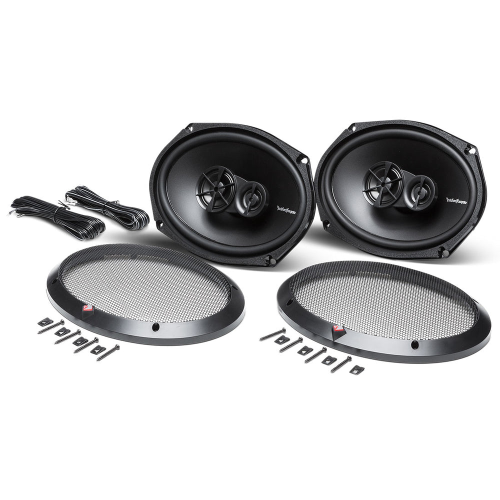 The Rockford Fosgate R169X3 is a 6”x9” 3-way full-range speaker rated at 65 watts RMS for a new generation of factory replacement speakers. Kit includes integrated high-pass crossovers and mounting hardware. The 6"x9" Prime full-range speakers offer Rockford Fosgate sound quality at a fantastic value. Perfect for replacing factory speakers, they feature polypropylene cones and a silk dome pole mounted Piezo tweeter and midrange. Includes grilles so they look as good as they sound.