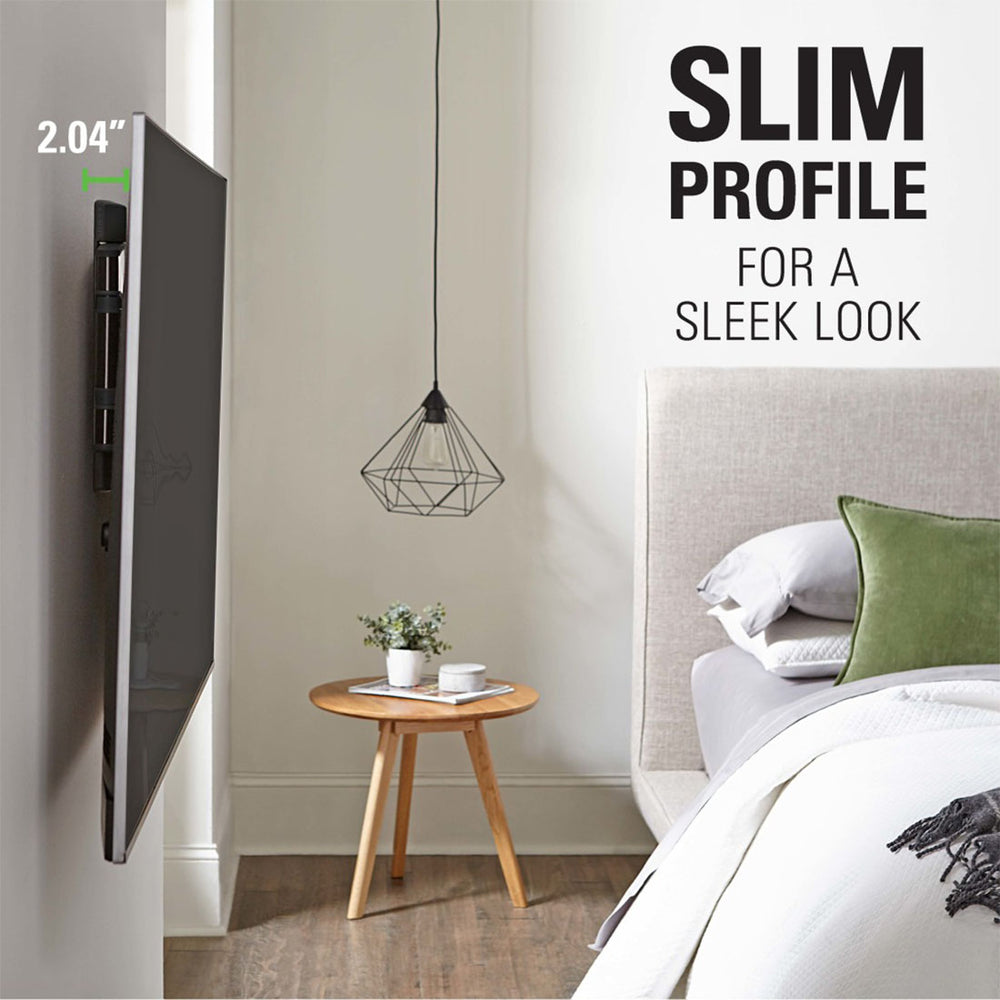 Bulky wall mounts are out. The Sanus VMF720-B2 holds your TV just 2.04 inches from the wall, giving you a clean, floating-screen vibe. It’s like wall art that plays your favorite shows.