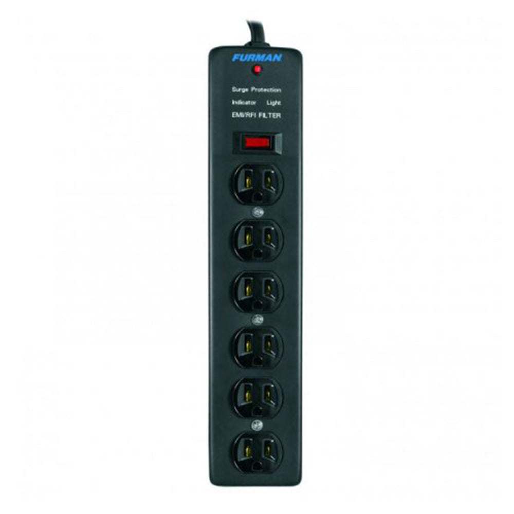 The Furman SS-6-FUR is a 6-outlet vertical steel power block with standard level surge protection, EMI/RFI filters, heavy-duty steel construction and a 15-foot power cable.