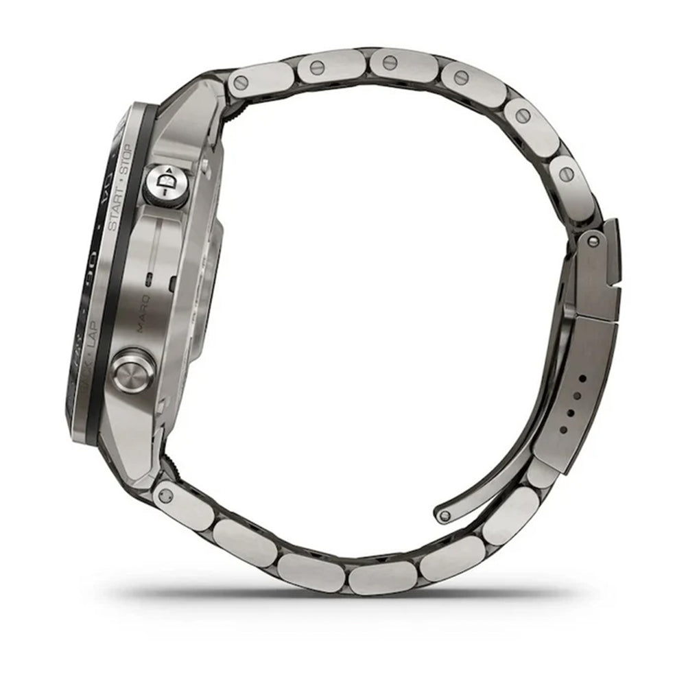 The Garmin 010-02648-00 MARQ Aviator exudes a rugged yet elegant look, crafted from Grade 5 titanium that’s both lightweight and incredibly strong. The bezel, which combines titanium and ceramic, not only enhances its visual appeal but also adds to its resilience. The domed sapphire crystal lens is a standout feature, providing a scratch-resistant surface that can withstand the rigors of aviation life.