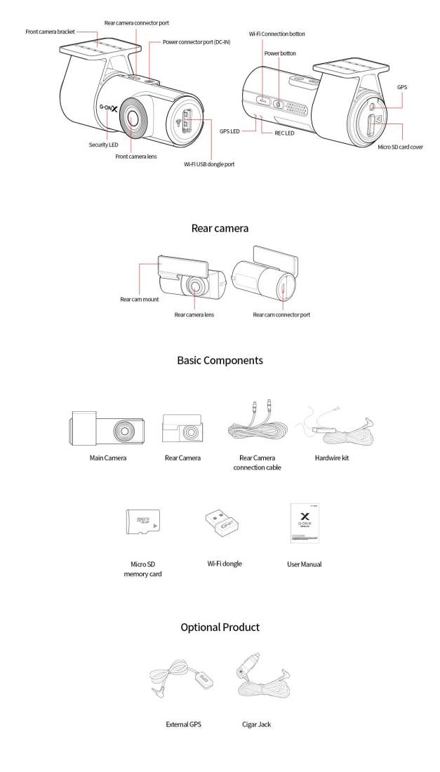 Connectivity: GNET Wi-Fi App GPS: External GPS The G-ONX is not just a dash camera; it's a part of your connected driving experience. With the GNET Wi-Fi App, you can easily access your recordings and control your dash camera from your smartphone. Need to check a specific moment or share an exciting event? It's as simple as a few taps on your phone. Additionally, the external GPS feature provides accurate location data, enhancing your overall driving experience.