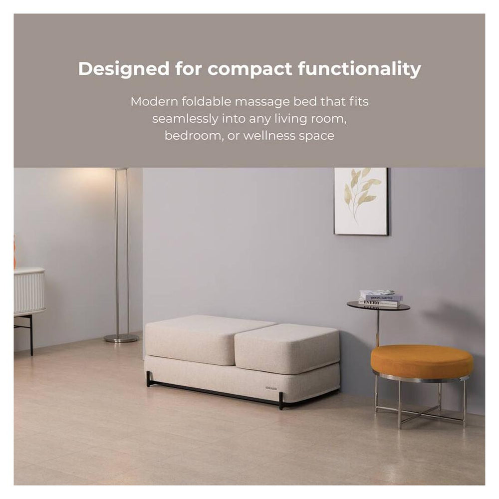 A low-profile, foldable form blends into interiors and folds away when not in use. Wipe-clean fabric and a hygienic structure reduce upkeep, while a supportive comfort foam surface adds a refined feel to every session.