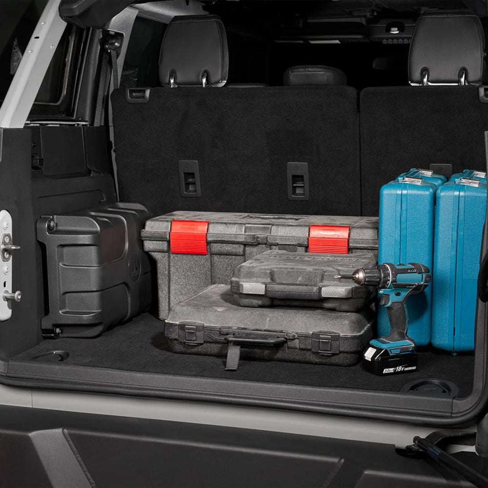 The PES110-TW1-4 boasts a sleek, modern look with a black textured finish and debossed logo on top, complementing any vehicle’s interior.