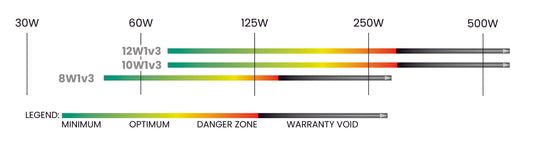 Recommended Amplifier Power Range (RMS) for One Subwoofer