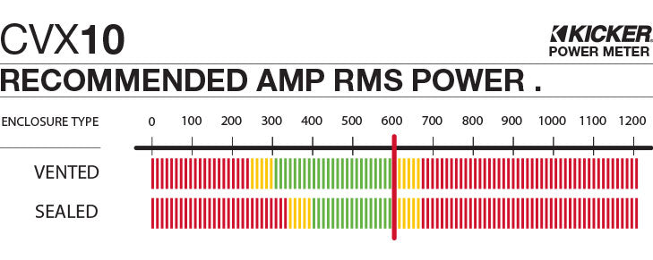 What is the RMS power rating of the Kicker 50CVX102? The Kicker 50CVX102 has an RMS power rating of 600 watts, allowing it to handle continuous power for high-quality bass output.