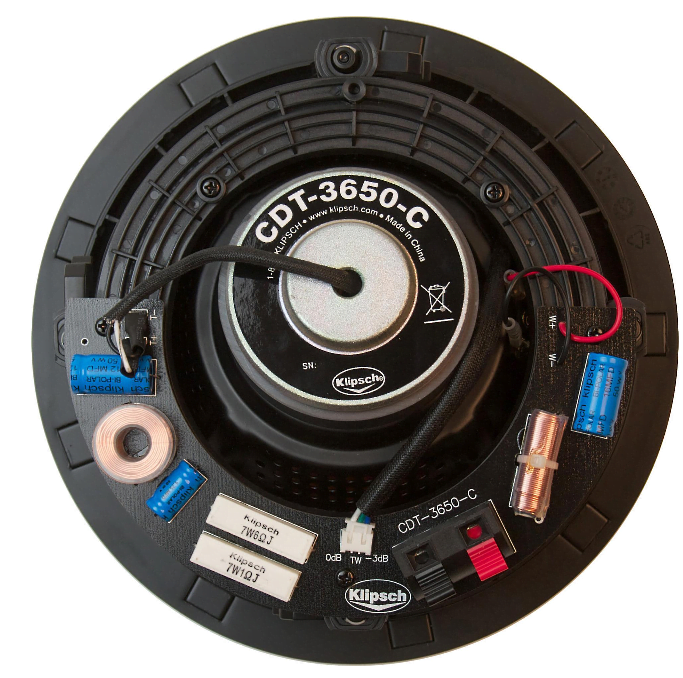 The Klipsch CDT-3650-C II maintains the core technology use of a rigid 1” Aluminum compression driver mated to an Tractrix® Horn combined with a 6.5” IMG woofer in a 2-way design. With a new low-profile, elegant grille and refinements to both high