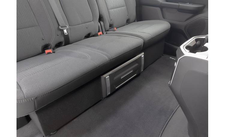Installing the R2-DB8V-TRK in your truck is a hassle-free experience. The rugged 5/8" MDF enclosure is wrapped in sleek black carpet covering that not only adds toughness but also enhances the aesthetics of your vehicle's interior. A central metal Pro-Link™ bracket allows you to adjust the enclosure's width, accommodating most full-sized trucks effortlessly. It's worth noting that this enclosure is also compatible with Jeep Gladiators and 4-door Wranglers, adding to its versatility. Alpine has considered every detail, including an integrated amplifier mounting tray optimized for their mono sub amplifiers. This ensures a snug fit under the rear seat of your truck, keeping your audio setup organized and compact. The EZ Change twist-lock grille system adds a touch of customization, allowing you to choose speaker protection options that match your truck's interior. Adjustable mounting feet provide added stability, so your subwoofer enclosure stays securely in place.