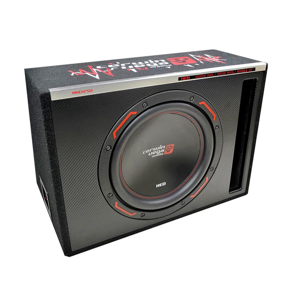 - What kind of subwoofer is inside the Cerwin Vega H6E12SV? It's preloaded with a single HED Series 12" dual voice coil (DVC) subwoofer, designed for high output and clean bass.