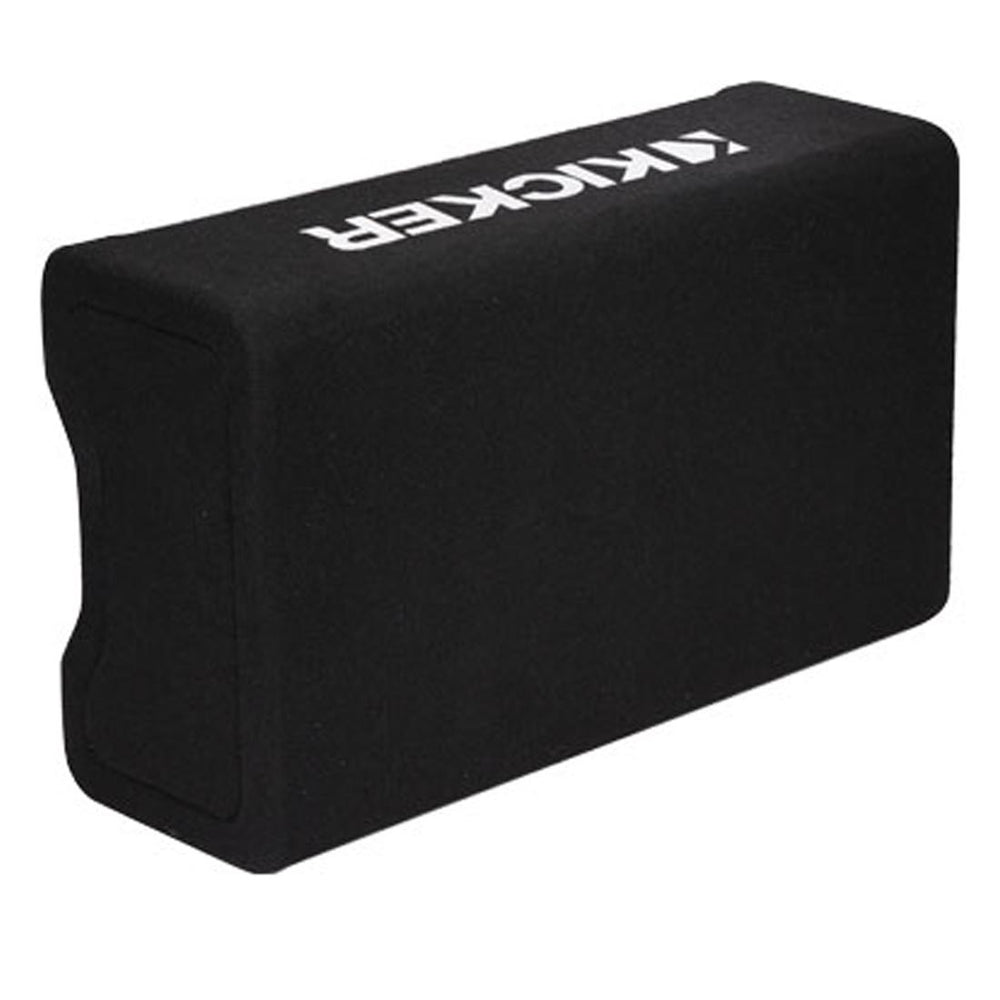 Constructed with 3/4" medium-density fiberboard and covered in thick black carpeting with rounded corners, the enclosure not only delivers exceptional performance but also offers a sleek and durable appearance. The single 4-Ohm terminal makes installation and wiring a breeze, while the embroidered KICKER logo adds a touch of branding and style.