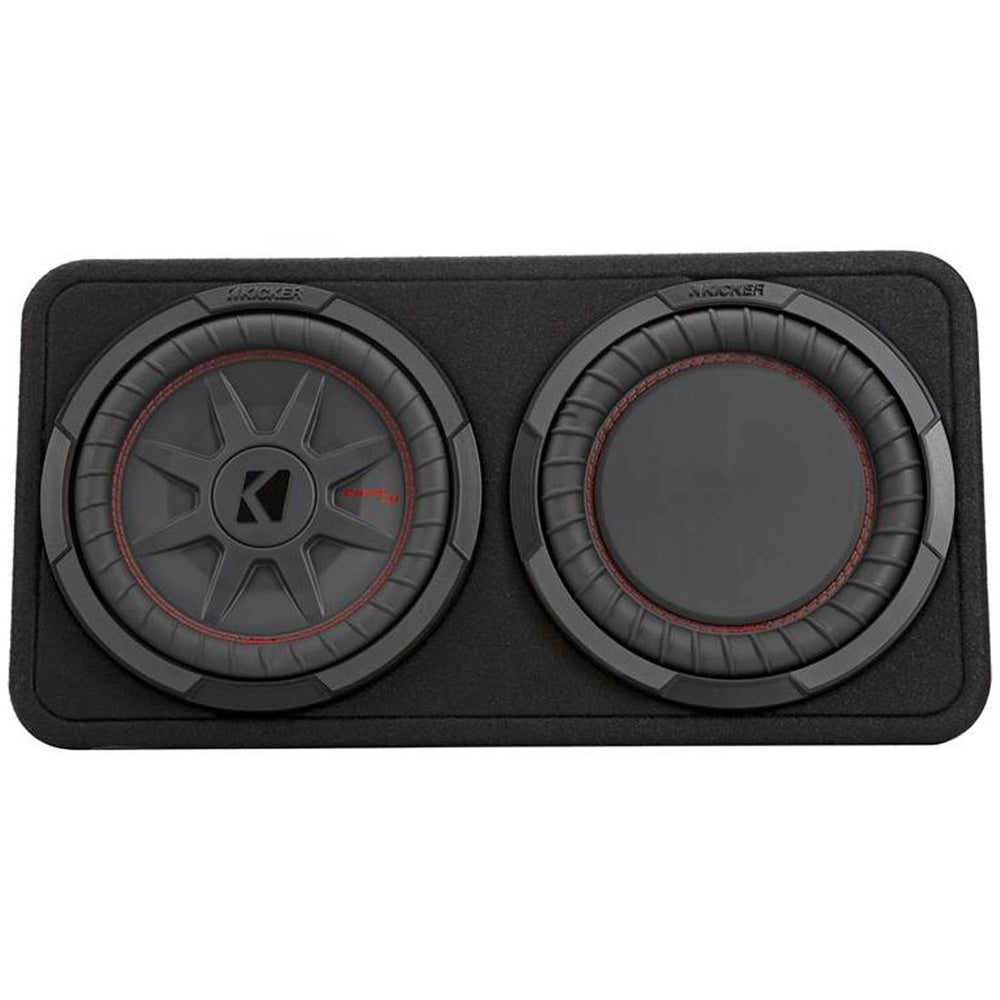 The Kicker 48TCWRT102 Truck-Style 2-Ohm Sealed Enclosure with Single 10" CompRT Subwoofer and Passive Radiator is a compact and efficient solution that delivers powerful bass in tight spaces. This loaded enclosure is designed to provide exceptional bass performance while maintaining a sleek and stylish appearance.