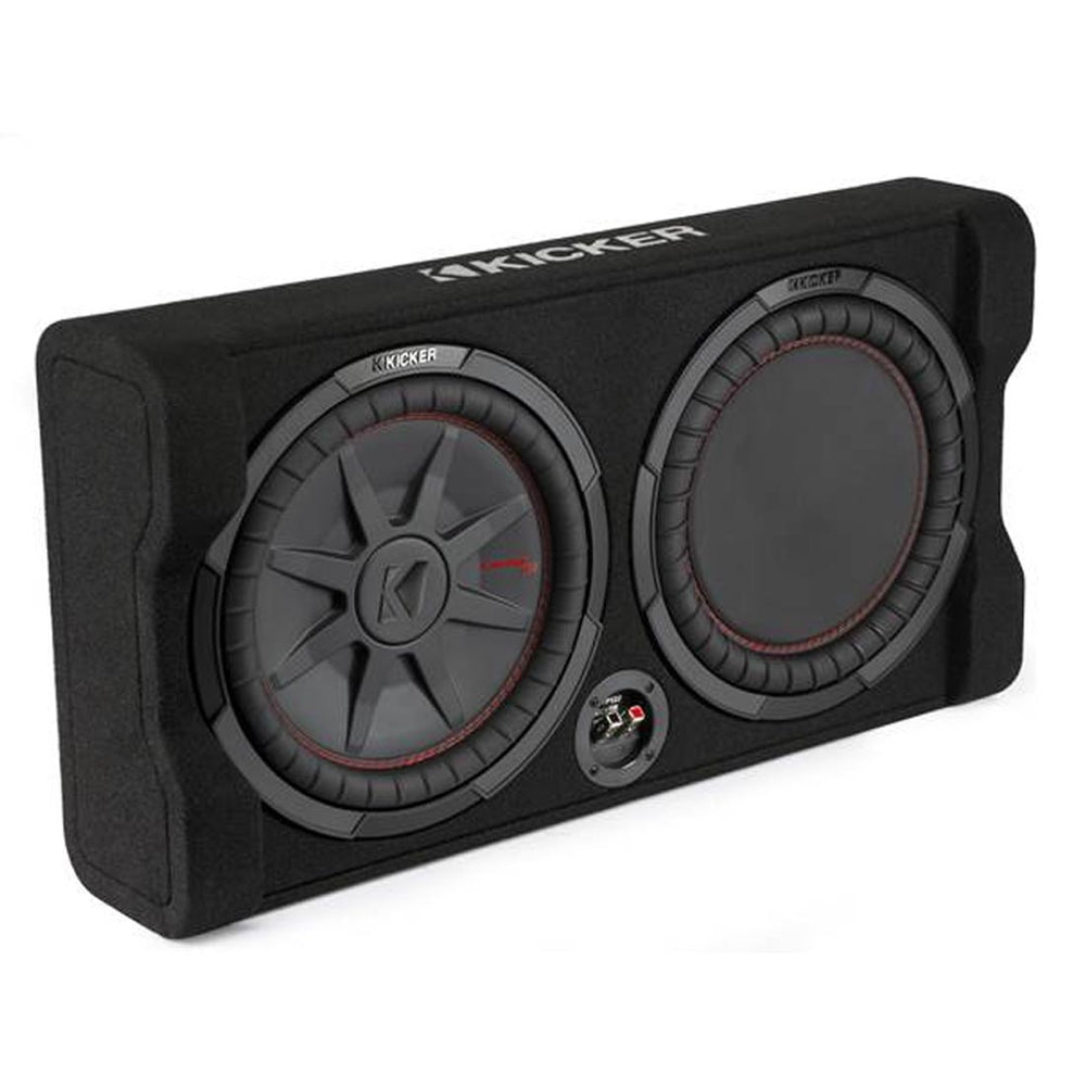 The Kicker 48TRTP122 Sealed 2-Ohm Downward-Firing Enclosure with CompRT 12" Shallow-Mount Subwoofer and Passive Radiator is a powerful and compact solution for adding deep bass to your vehicle without sacrificing cargo space. Designed to fit perfectly under your truck seat or in the trunk, this ultra-efficient TRTP™ Down-Firing Loaded Enclosure delivers massive bass performance.