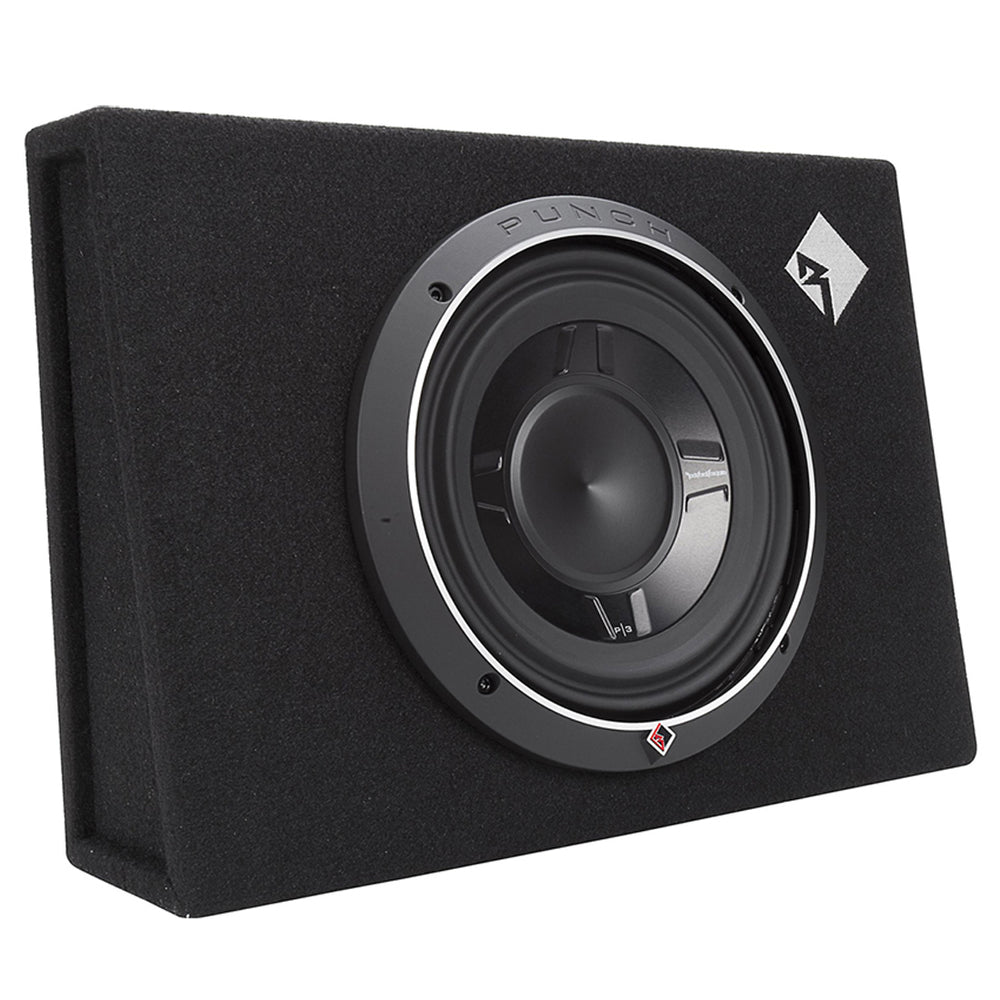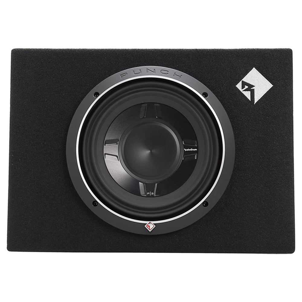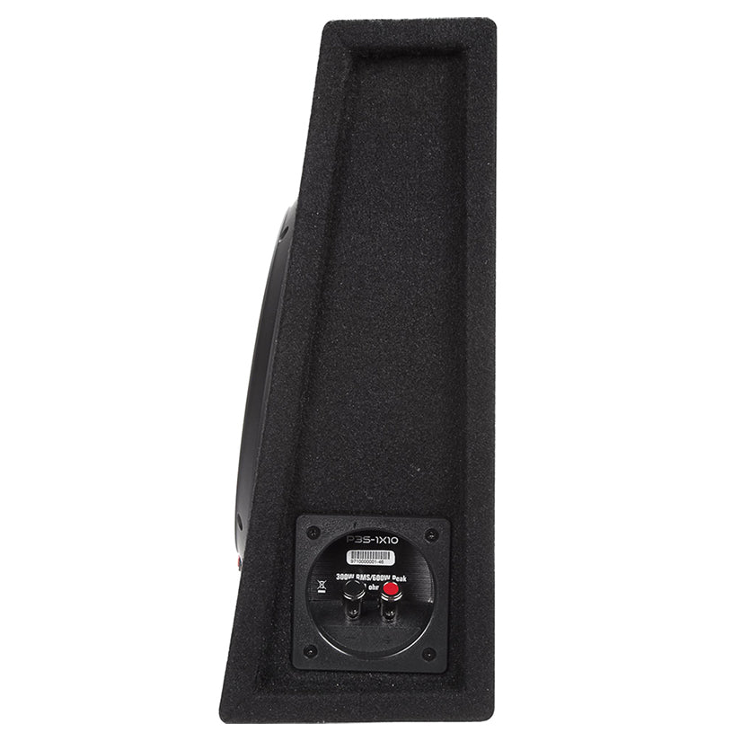 The Rockford Fosgate P3S-1X10 is a single 10” Punch Shallow subwoofer. Rated at 300 Watts RMS and loaded in a sealed enclosure. This subwoofer enclosure is internally wired to a 1-Ohm load. Features 5/8” MDF and 10 AWG quick-release input terminals.