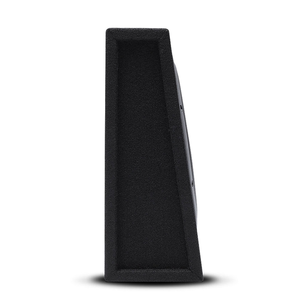 The R2S-1X12 is a single 12" shallow enclosure with a 2-Ohm load and 250 Watts RMS power handling. The enclosure is made of 5/8" MDF, has a high-density carpet covering, and quick-release compression terminals. Our PRIME R2S 12" shallow loaded enclosure is sure to be a perfect fit for your ride and your budget when you don't have enough room for bass. Because of the slim-line depth of 3.25" on top and 5.25" on the bottom, these shallow loaded enclosures can fit in tight spaces. For single-cab trucks with limited seat travel, the wedge design is ideal. Are you ready to have a good time? Yeah, we thought so.