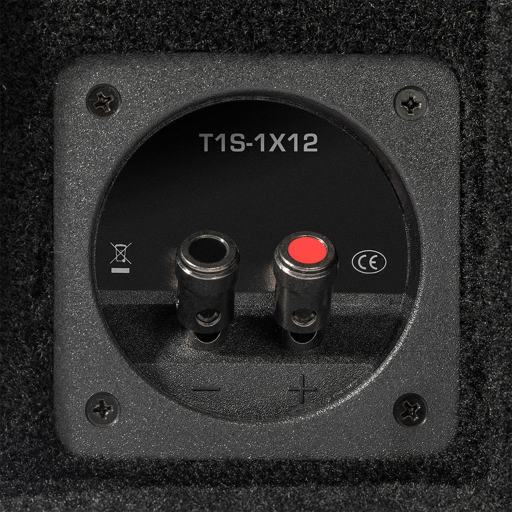 The Power T1S-1X12 is a fully loaded enclosure with a 12" Power T1 slim subwoofer and 600 watts of power handling capacity. This sealed enclosure is for bass heads who prefer a deep, solid "thump" in their bass response.