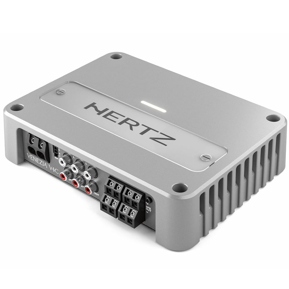 - How much power does the Hertz VENEZIA V4C deliver? The VENEZIA V4C delivers 110 watts per channel at 4Ω across four channels, and 380 watts across two channels when bridged. This ensures plenty of power for high-performance speakers or subwoofers.