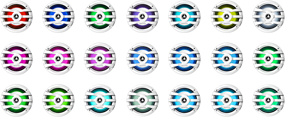 Buying marine speakers with built-in LED lighting? Give yourself options! Kenwood KFC-1673MRBL 6.5" 2-way speakers offer 20 colors, 8 patterns, and 8 speeds, plus a wireless remote control to make adjustments.