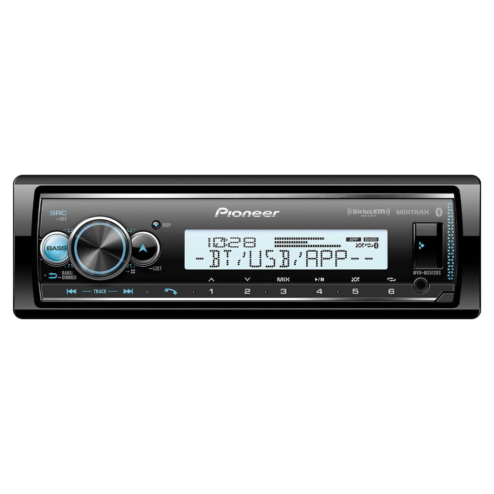 Pioneer's MVH-MS512BS marine digital media receiver brings great tech and handy features to your boat. It gives you so many ways to play your music, plus built-in Bluetooth, smartphone control, and a reversed display that's easier to read in bright sunlight. With big buttons and a marine-rated design, it's made for the rigors of life on a boat.