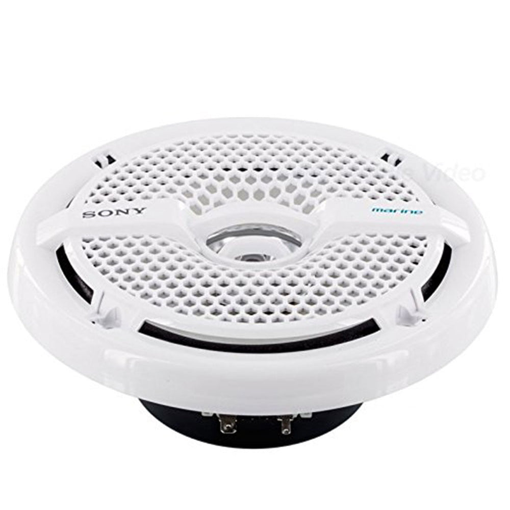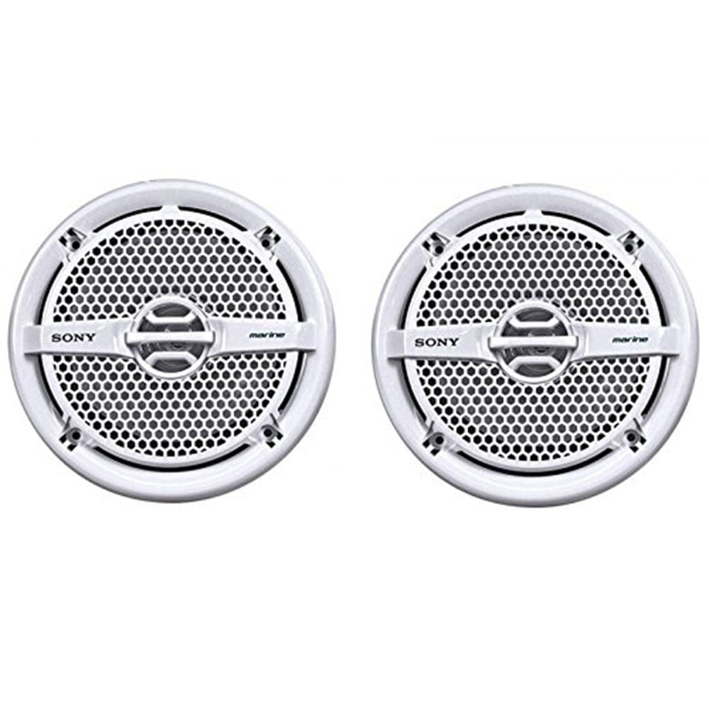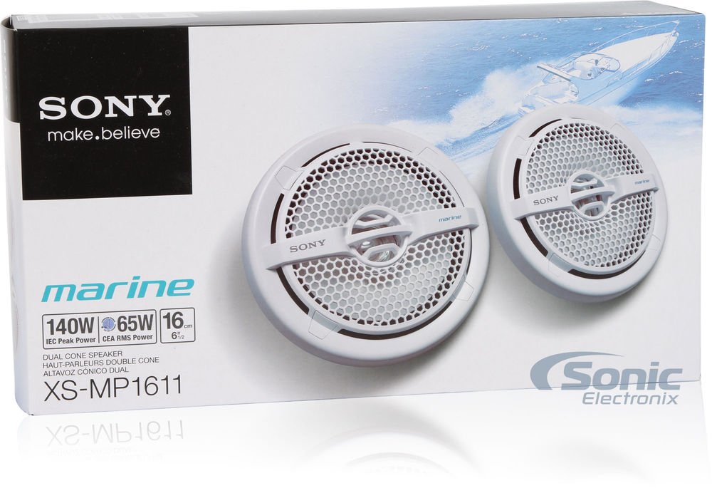 Enjoy exceptional sound quality in your boat with Sony XS-MP1611 speakers that carry on Sony’s tradition of quality components. This pair of 6-1/2" dual-cone speakers puts out up to 145 watts (65 watts RMS) to offer excellent high-power output. Frequency response range of 40Hz to 20Hz teams with 90db efficiency and a strontium magnet to deliver optimal sound clarity. Water-resistant, UV-resistant and tested to meet ASTM G154 standards, they’re an ideal choice for watercraft sound systems. Mounting diameter is 5" with a seating depth of 2-1/8". Insulated tinsel leads. Per pair.
