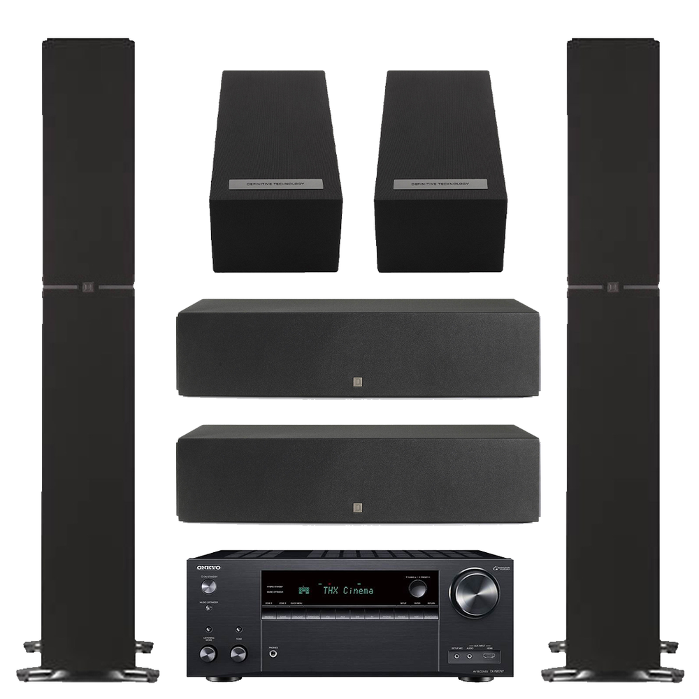 Onkyo TX-NR797 9.2-Ch Receiver | Definitive Technology DM80 Bipolar Floor Standing Speakers | DM30 Center Channel | DM90 Dolby Atmos Speakers - Bundle